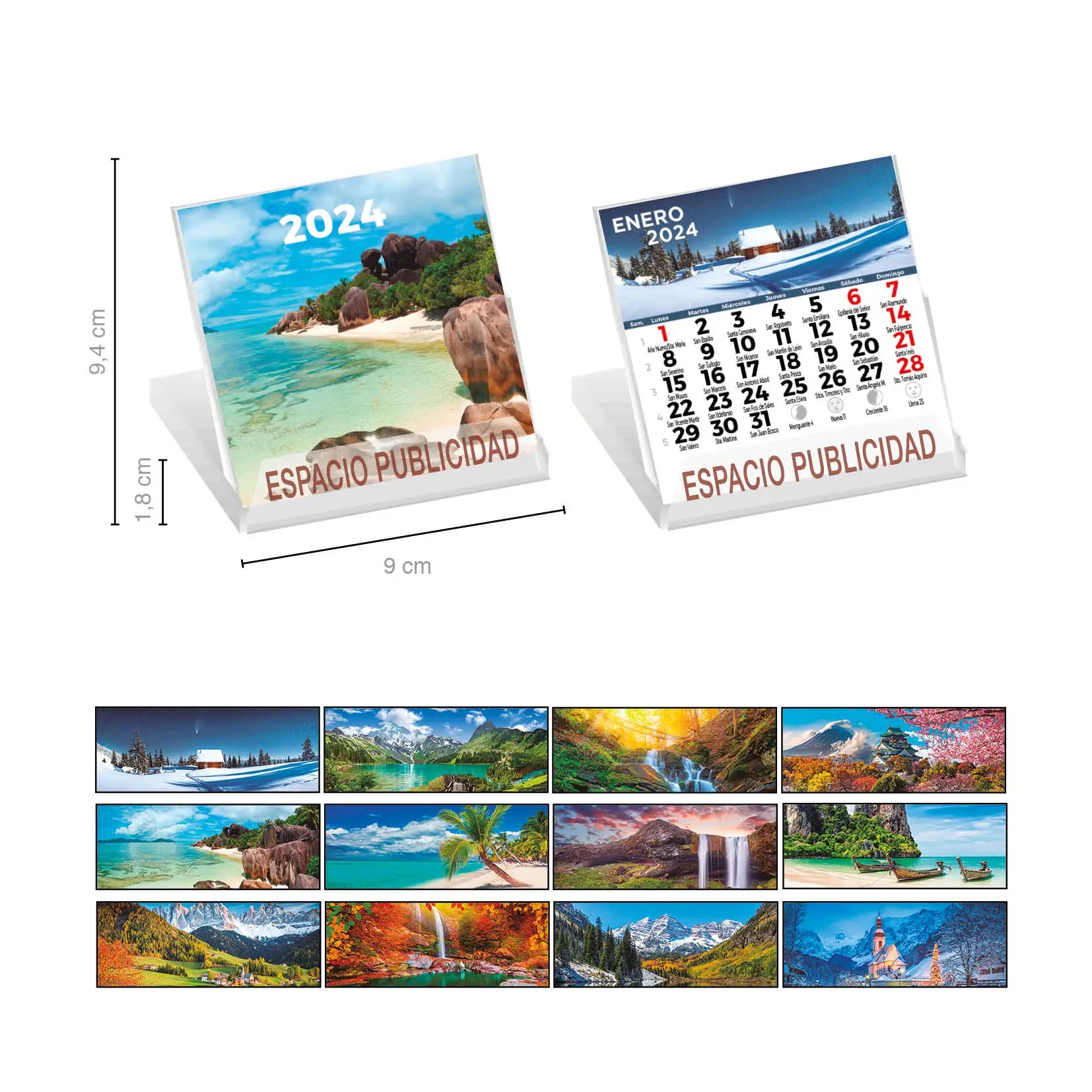 Te personalizamos tus calendarios de publicidad al 100%. Sólo elige el tipo de calendario promocional que te guste y nosotros lo fabricamos con tus fotografías, texto y logotipos.